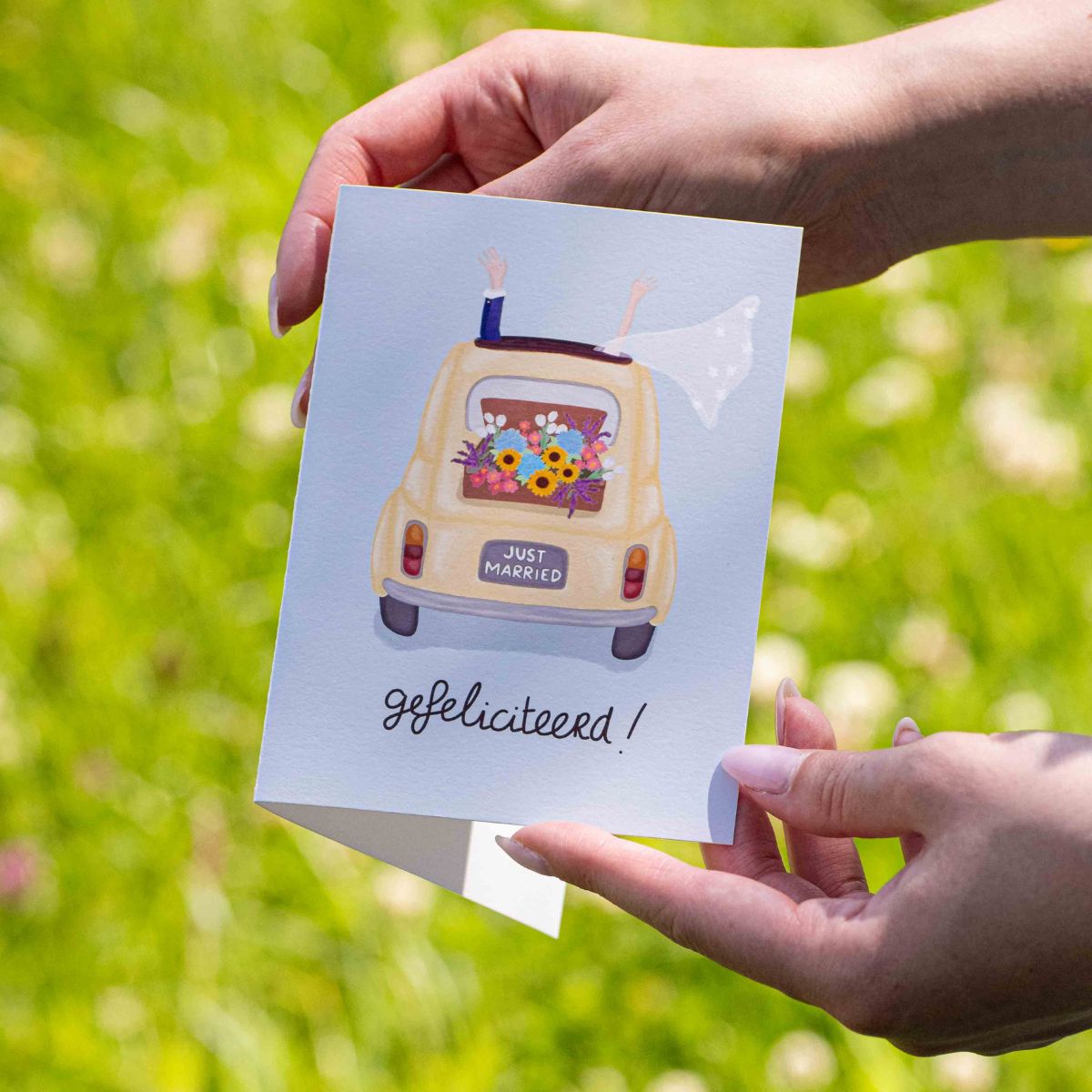 Onze kaarten worden gedrukt op hoogwaardig papier met subtiele textuur (vergelijkbaar met aquarelpapier) voor een luxe uitstraling. De bijbehorende enveloppen zijn gemaakt van milieuvriendelijk landbouwafval. Om de kaarten te beschermen en kwaliteit te waarborgen worden ze verpakt in een PLA zak. PLA is een bioplastic dat gemaakt wordt uit hernieuwbare grondstoffen.
