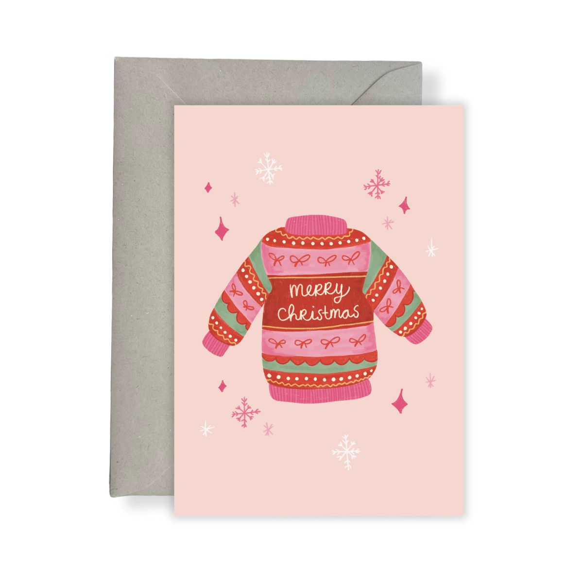 Handgemaakte Kerstkaart – Foute kersttrui 'Merry Christmas'