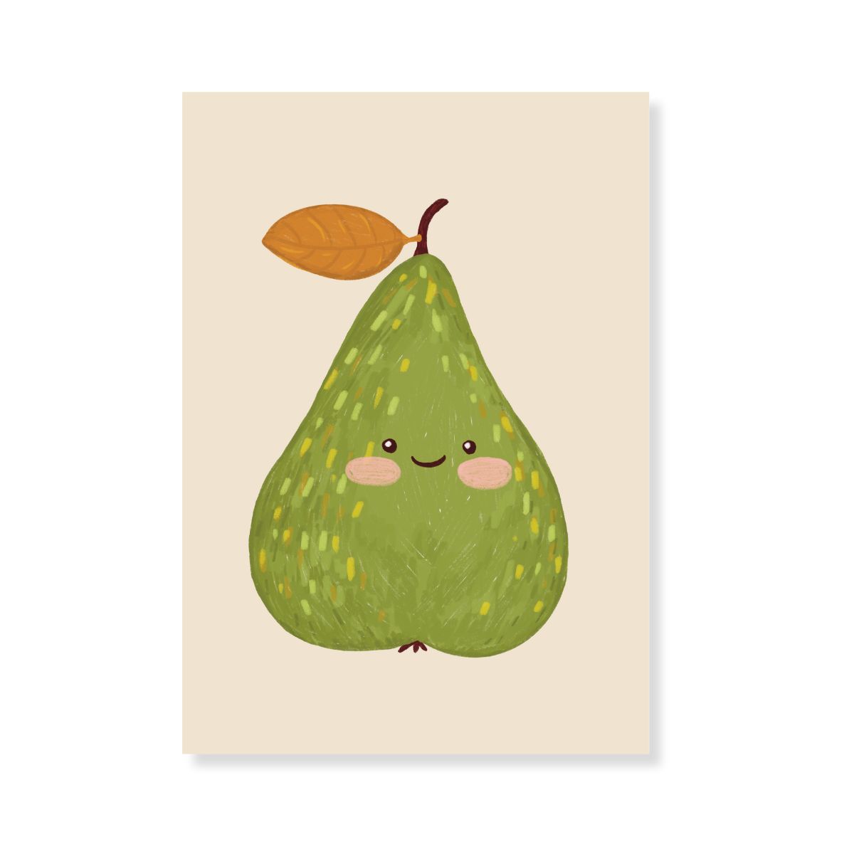Handgemaakte Illustratie – Kinderposter: Vrolijke peer