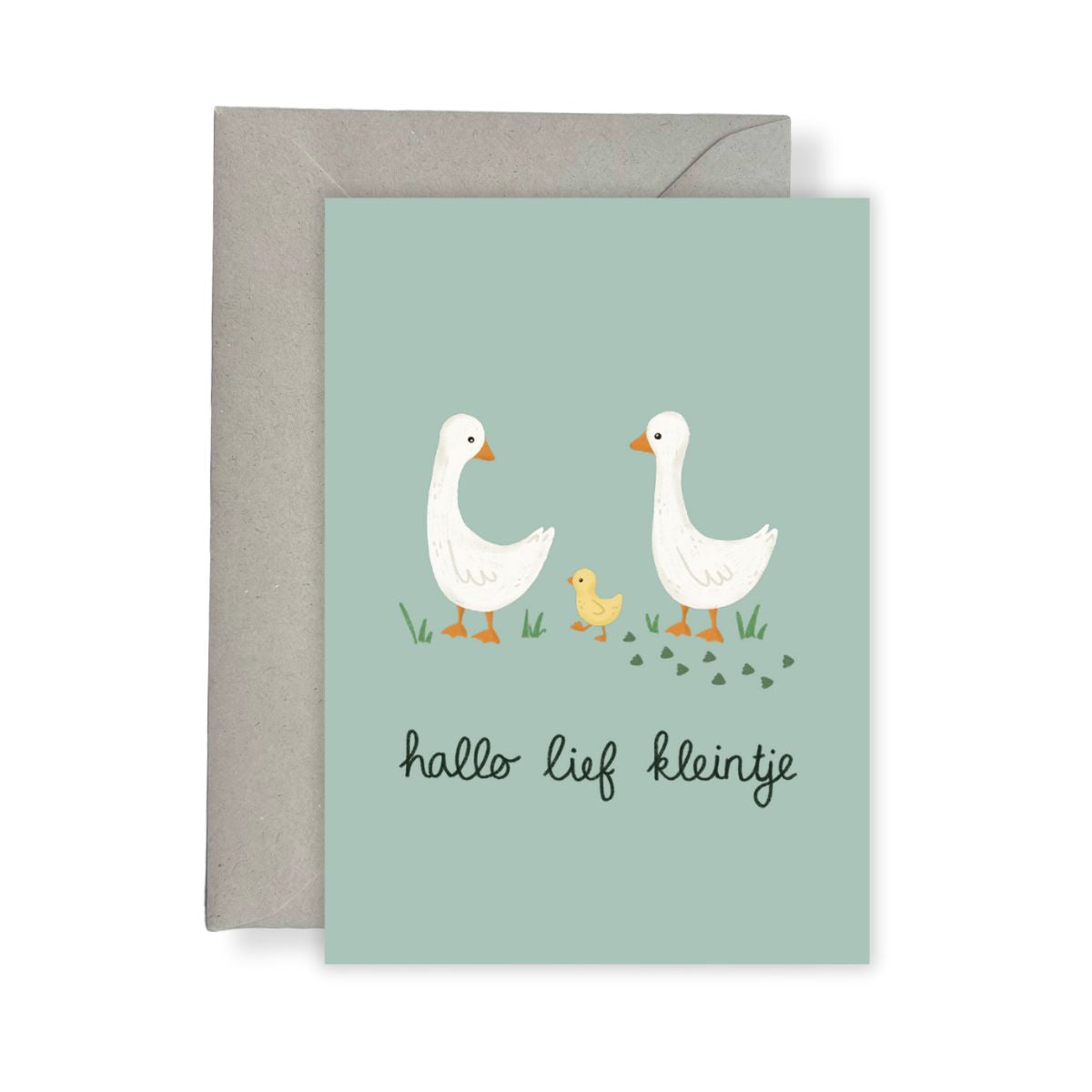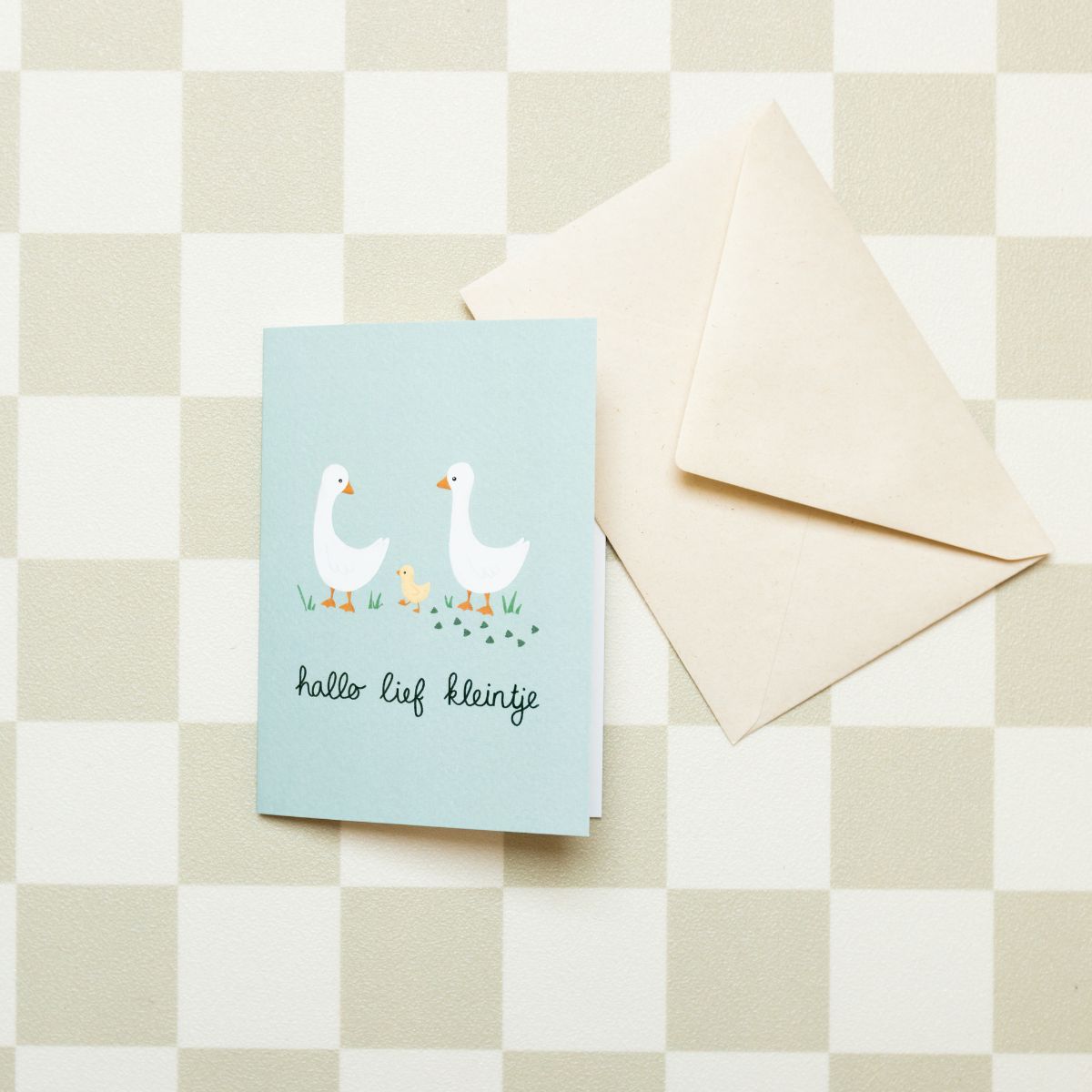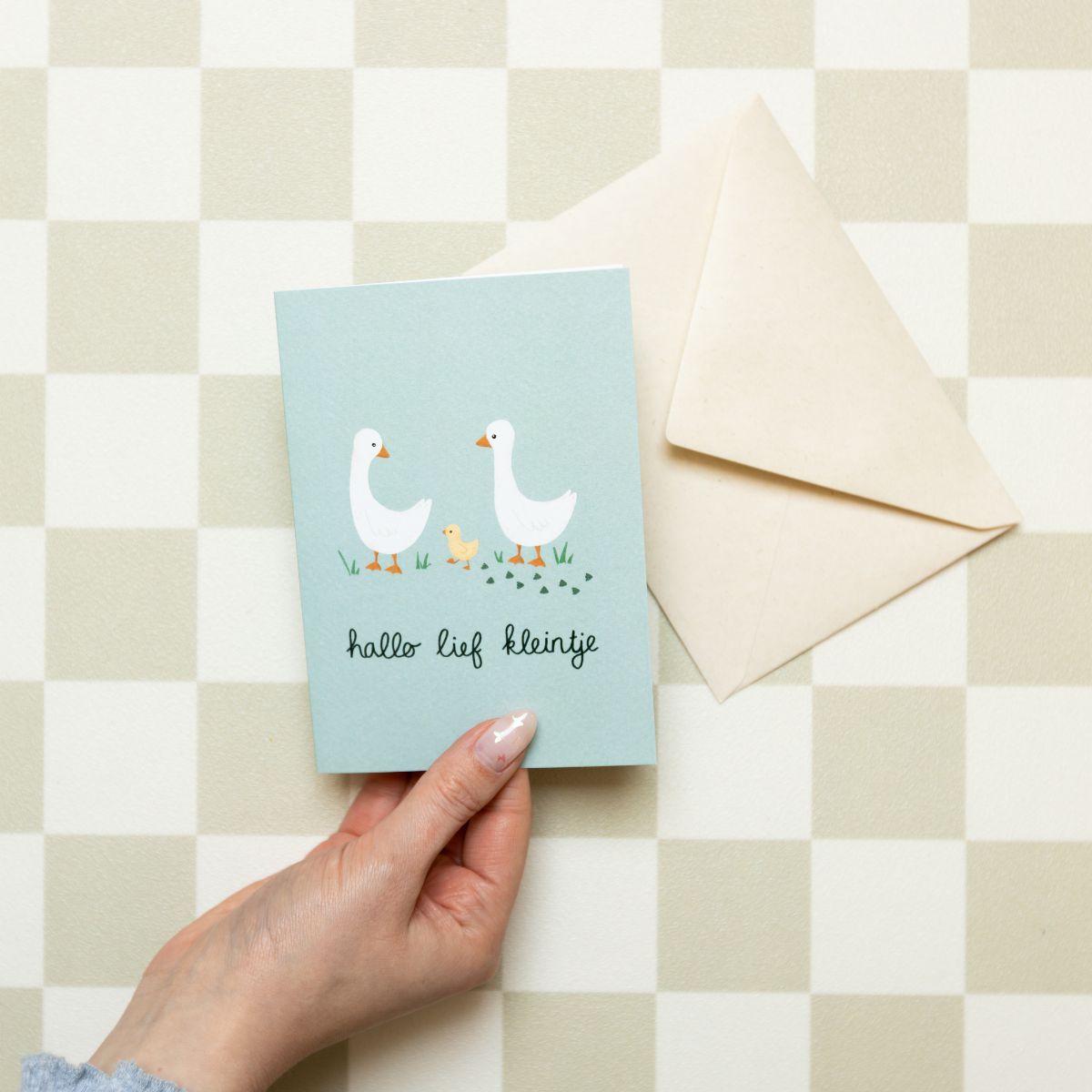 Handgemaakte Wenskaart – Geboortekaart eendenfamilie